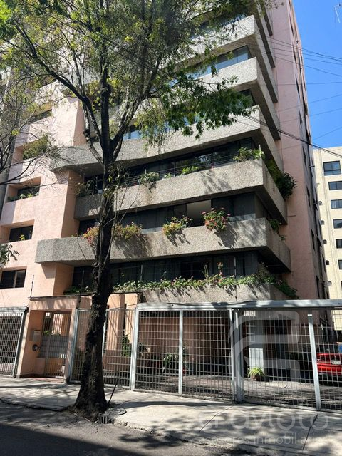 Lindo departamento amueblado, exterior, bien iluminado. Amplio. Edificio de 8 departamentos, uno por piso. Elevador. Amplia estancia y comedor, cocina equipada con desayunador y alacena. Medio baño de visitas. Recámara principal con baño completo, clóset y vestidor. Segunda y tercera recámara con baño propio y clósets. Clóset de blancos. Entrada de servicio independiente, área de lavado, cuarto de servicio con baño.