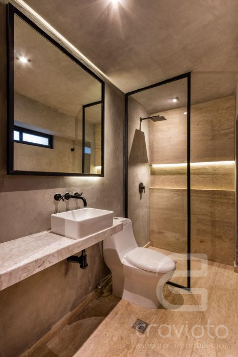 Estancia y cocina abierta. Un baño completo. Una recámara con terraza y clóset. Contando la terraza son 57m2.