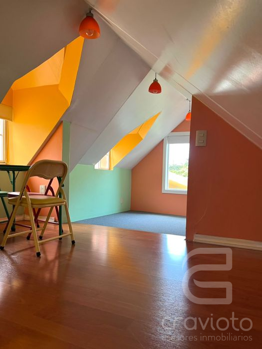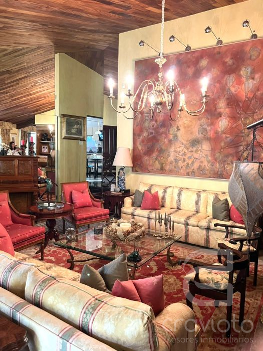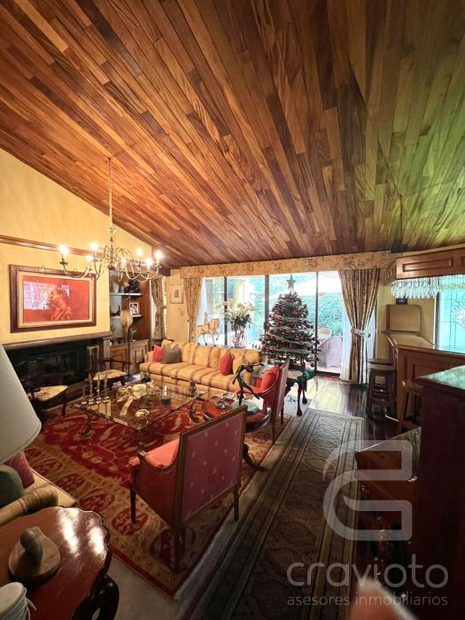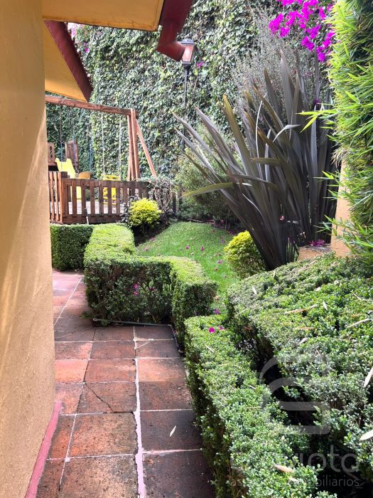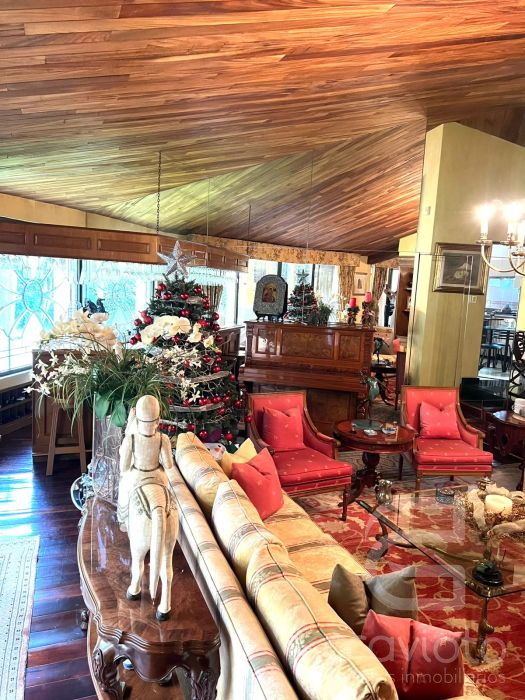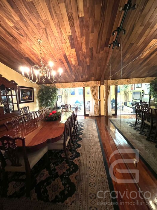 Ubicada en el Barrio de San Francisco. Casa en una sola planta con vista al jardín (100 -120 m2 aproximadamente) en su mayoría. Excelentes acabados, pisos de granito y madera. Techos inclinados de madera. Teja por fuera. Doble altura interior en estancia y techos altos. sensación de amplitud.