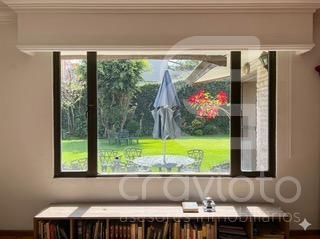 Sala principal con vista y salida al jardín
