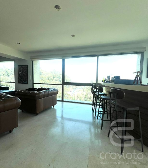 Iluminado, lujoso, amplio y con hermosa vista arbolada hacia Bosques de Santa Fe. Finos acabados. Pisos de mármol en áreas sociales y madera en recámaras.