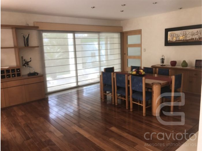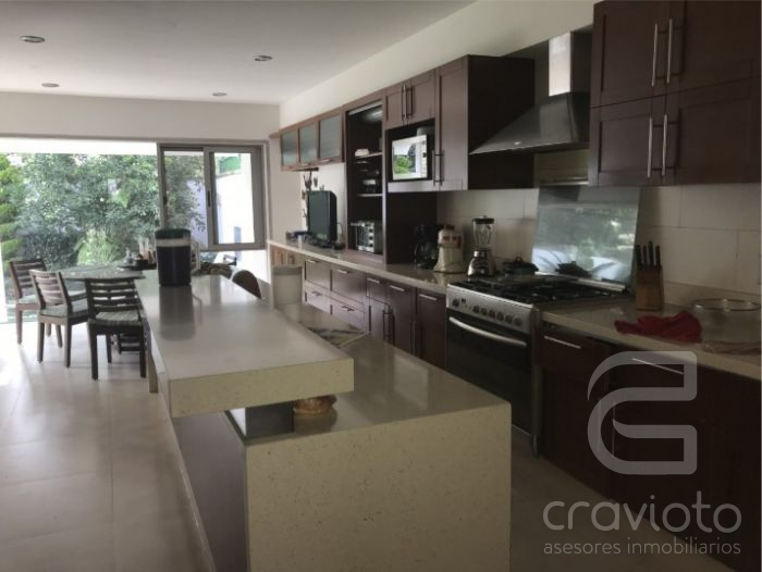 En la planta baja: Vestíbulo de acceso, estancia para sala y comedor con vista al jardín, despacho con medio baño, cocina amplia y equipada con espacio para antecomedor con vista al jardín, cuarto de lavado con patio de servicio y bodega. Hermoso jardín que cuenta con asador y tarja, una terraza de 31 m2 y sistema de riego por aspersión.