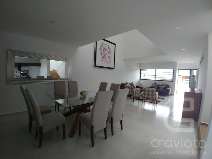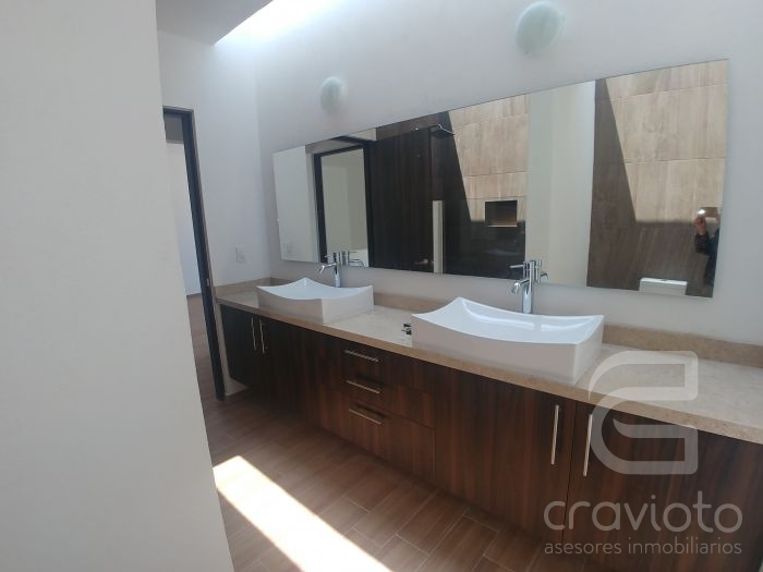 Casa en 2 niveles. Planta Baja: Gran cocina con isla, cubiertas en granito, área de lavado, jardín, estancia muy amplia y vestíbulo a doble altura, recámara o estudio, baño completo. Planta Alta: 3 amplias recámaras (principal con baño y vestidor), excelentes espacios, distribución e iluminación natural.