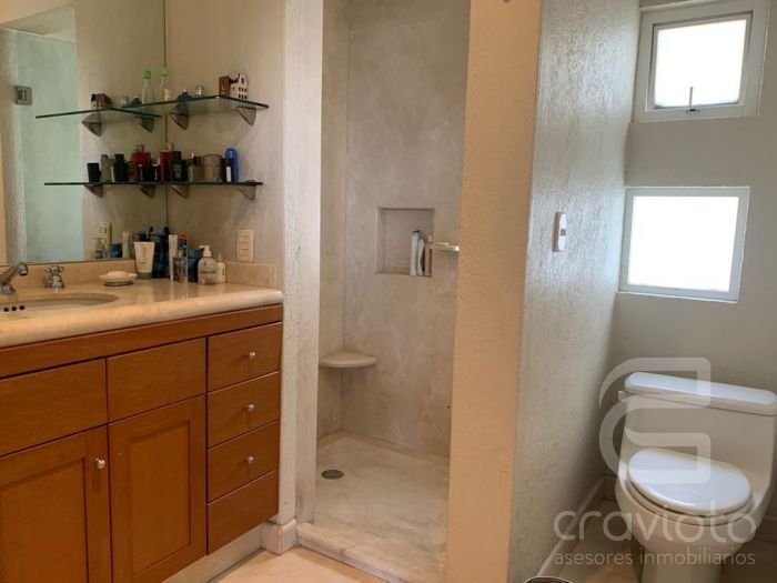 En el nivel de calle se encuentra el estacionamiento techado para 5 coches, cuarto de servicio con baño completo, cuarto para chofer con medio baño y bodega amplia. Acceso de servicio hacia la casa y acceso principal separado.