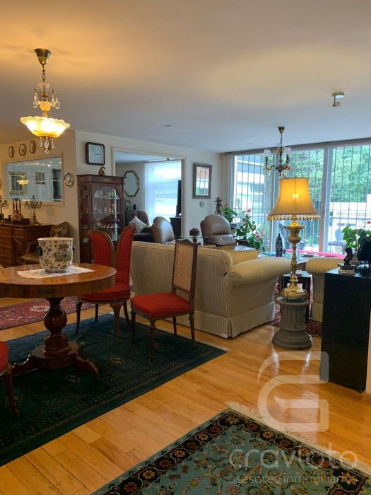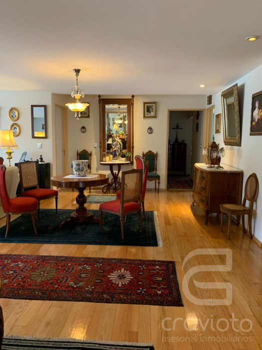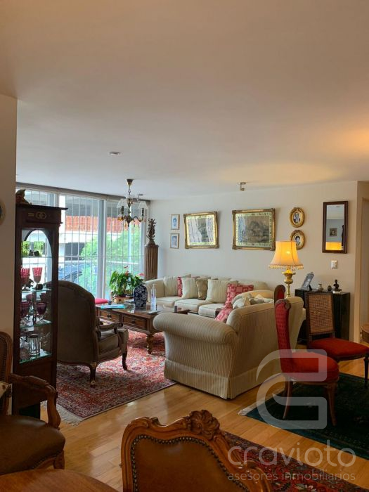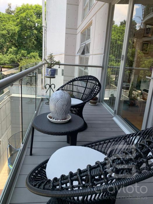 Precioso departamento en cerrada. Consta de sala y comedor muy amplios e iluminados, con balcón a lo largo. Amplia cocina con desayunador. Dos grandes recámaras con vestidor y baño completo con ventilación natural. Estudio que puede convertirse en tercera recámara. Pisos de madera.