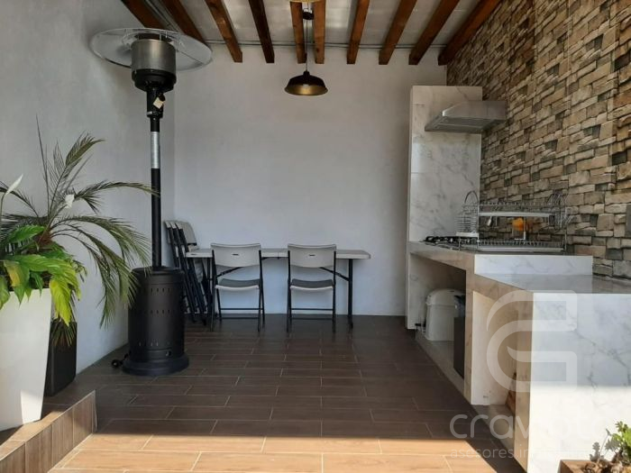 En 3 niveles, cuenta con sala, comedor, cocina, alberca, jacuzzi, gym, jardín, terraza con área de snack, estacionamiento para 2 autos, cámaras de vigilancia.