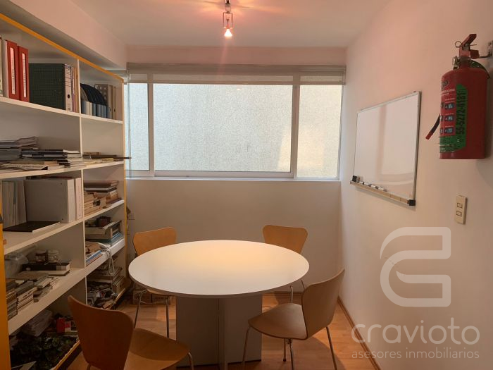 En tercer piso. Cuenta con recepción, oficina, ½ baño, sala de juntas para 8 personas, dos estacionamientos techados, amplio, independiente, cisterna, baño común para hombres y mujeres. Vigilancia 8 horas y conserje, cámaras de vigilancia, puerta eléctrica, elevador.
