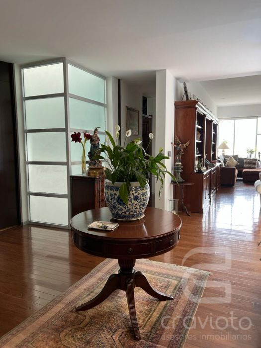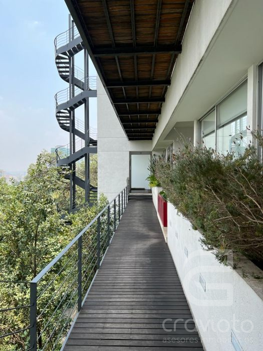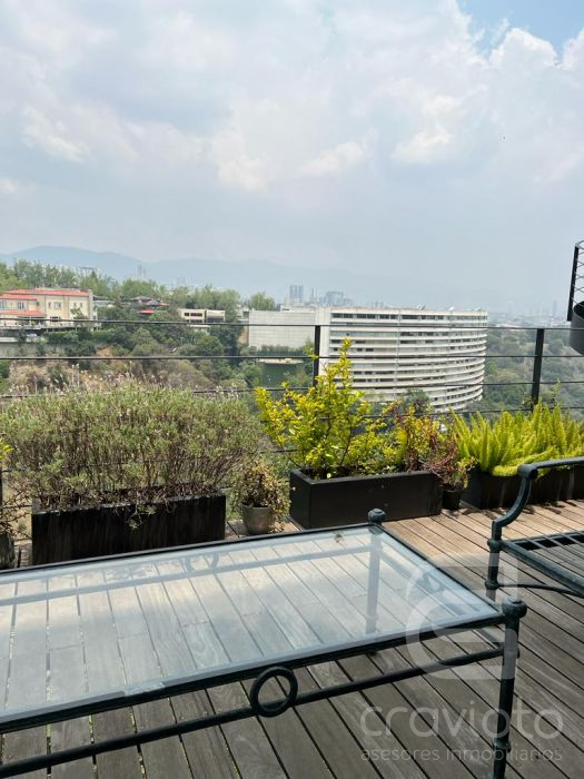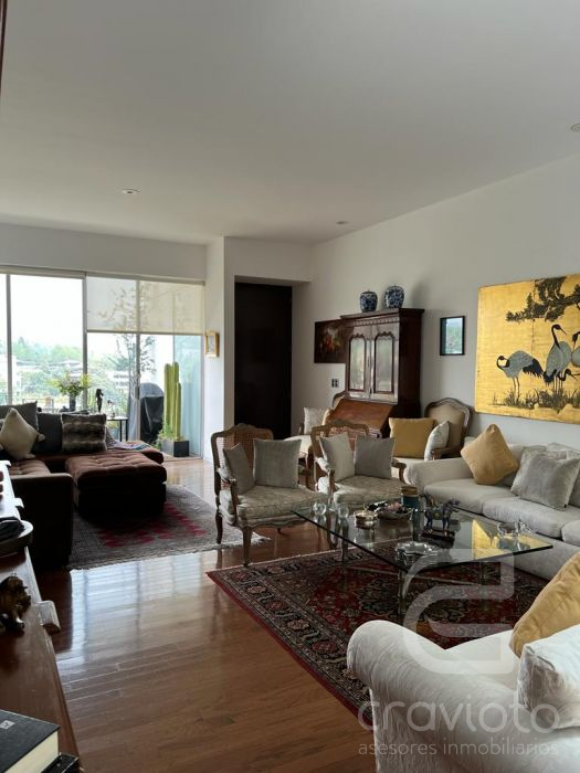 El departamento se encuentra en primer piso, iluminado, estancia con terraza y vista al bosque, estudio, comedor, cocina abierta, patio interior techado, recámara principal con vestidor y baño también da a la terraza con espectacular vista , 2a recámara con vestidor y balcón, baño completo para uso general. Cuarto de servicio con baño completo, área de lavado. Estacionamiento para tres coches en hilera, bodega. Puertas eléctricas, seguridad 24 hrs, circuito cerrado.