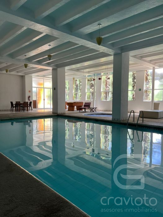 Amenidades: alberca techada, jacuzzi, cancha de pádel, gimnasio, jardín y salón de eventos.