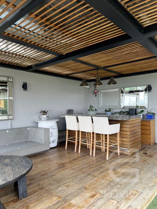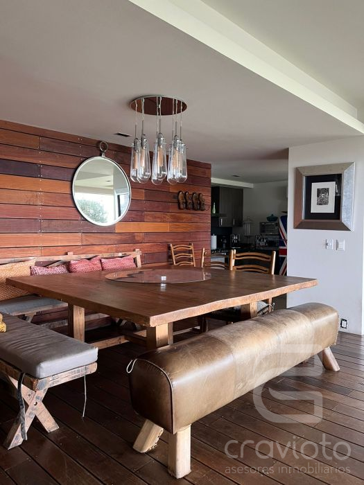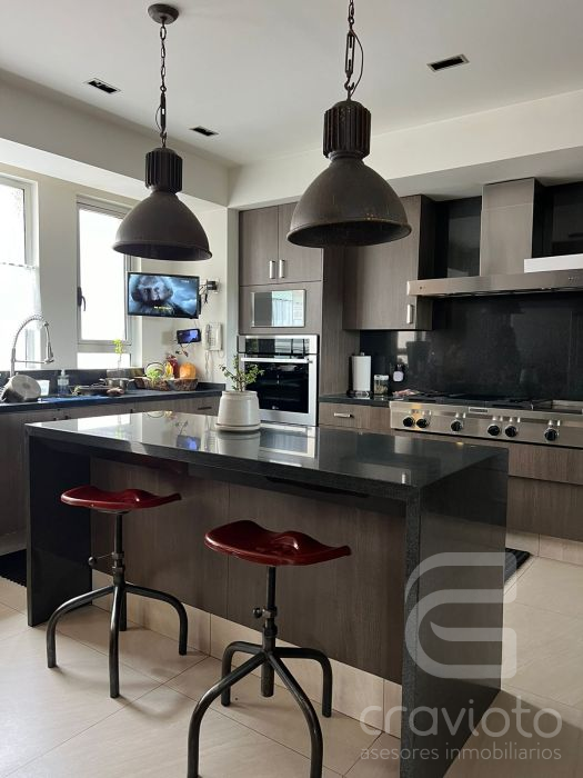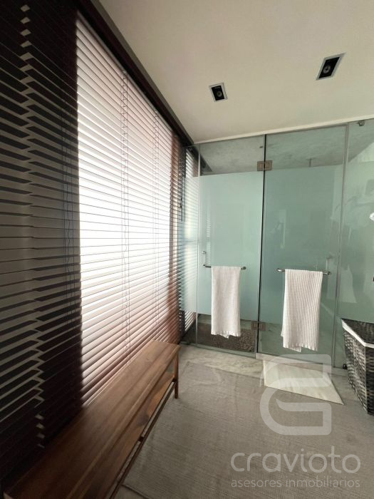 Planta arriba: Roof garden. Sala, dos comedores, aire acondicionado, cocina, área para asador, jacuzzi, pérgola y techo replegable, gimnasio, sauna.