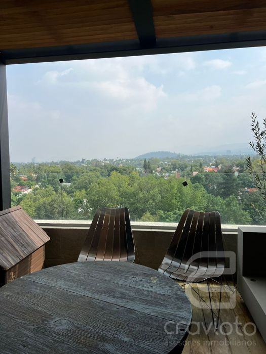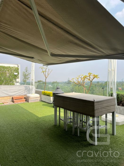 Hermoso Penthouse con vista arbolada y panorámica. Edificio de 7 niveles con dos elevadores. Tranquilo y seguro. Iluminado. Acabados de lujo. Pisos de madera. En excelente estado de conservación. Consta de tres plantas.