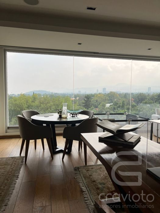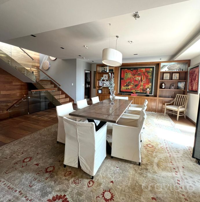 Cuarto para chofer con baño. Bodega amplia. No amenidades comunes. Seguridad 24/7. Circuito cerrado. Cisterna y planta de luz. Estacionamiento para 9 autos en tres hileras y uno con elevador (con posibilidad de 12). Blindaje en puerta principal. Aceptan mascotas en el edificio. Cuota de mantenimiento mensual $8400.