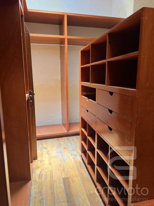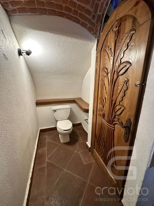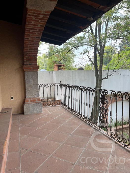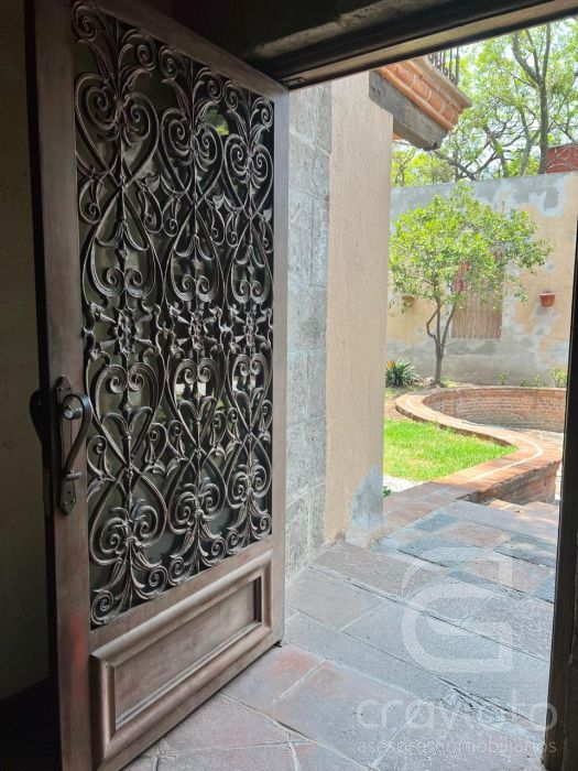 En la parte trasera de la casa hay otra construcción dividida por un hermoso callejón en donde se encuentra un pequeño salón con baño completo, el cual puede utilizarse como otra recámara, estudio, taller u oficina. Área de lavado, tendido y cuarto de servicio en la planta alta.