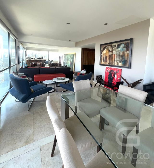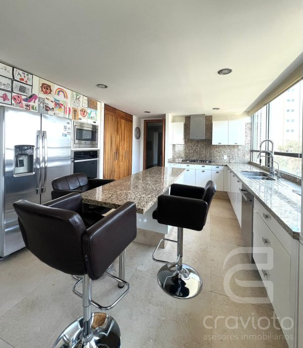 Iluminado, lujoso, amplio y con hermosa vista arbolada hacia Bosques de Santa Fe. Finos acabados. Pisos de mármol en áreas sociales y madera en recámaras.